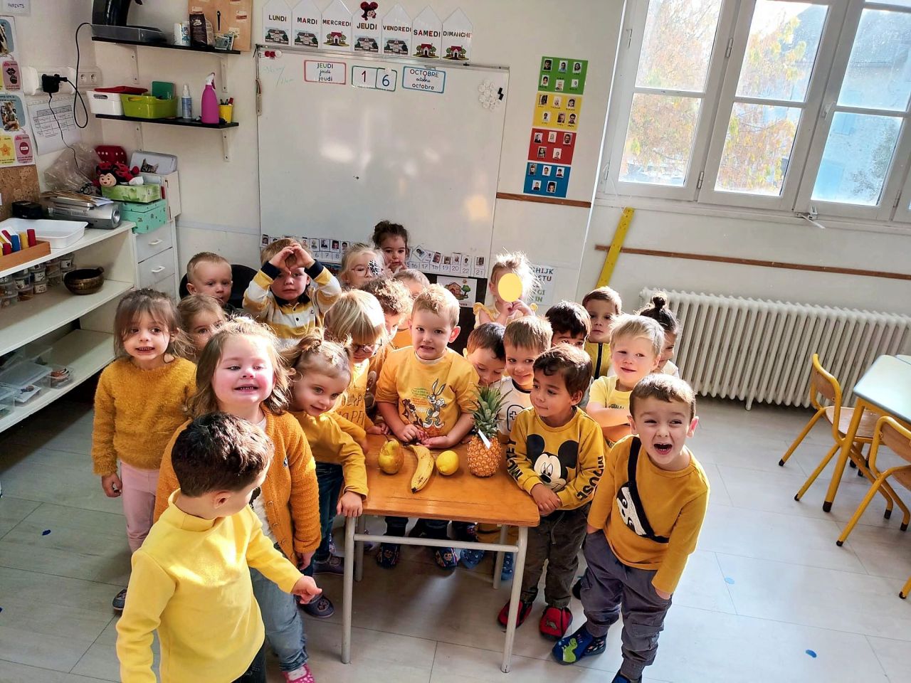 La classe de TPS/PS en a vu de toutes les couleurs pendant la semaine du goût ; Orange, vert, jaune, marron : chaque jour une couleur, une recette, une dégustation... Nos apprentis cuistots ont préparé de la soupe, du jus de fruits, de la salade de fruits et ont appris à déguster du chocolat en le laissant fondre dans la bouche... Ils se sont régalés !